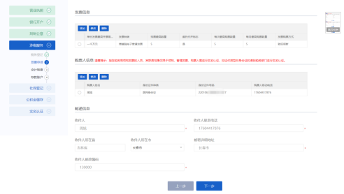 16) 填寫委托代理人信息,點擊【下一步】,如下圖