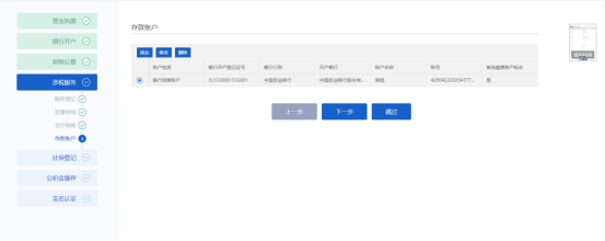29) 完善會計信息后點擊“下一步”進入存款賬戶頁面如下圖