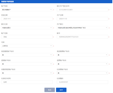 31) 點擊“添加”或“修改”填寫存款賬戶信息如下圖: