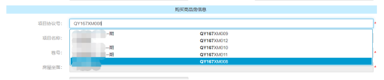 借款人信息錄入完畢后點(diǎn)擊左上角進(jìn)入【房屋與共有權(quán)人信息】頁簽錄入貸款房屋信息,根據(jù)實(shí)際情況選擇首套房貸款或第二套房貸款,借款人是首套房貸款的【第N套房】列表選項(xiàng)應(yīng)選首套房;是二套房貸款的【第N套房】列表選項(xiàng)應(yīng)選二套房;系統(tǒng)默認(rèn)顯示為首套房,經(jīng)辦人根據(jù)實(shí)際情況選擇正確的選項(xiàng)?!卷?xiàng)目協(xié)議號(hào)】處經(jīng)辦人錄入自己負(fù)責(zé)的開發(fā)商項(xiàng)目協(xié)議(支持協(xié)議模糊查詢?nèi)缦聢D所示)