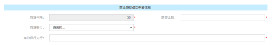 若借款人選擇組合貸款,在上方組合貸款標(biāo)志處選擇了【是】后 下方試算結(jié)果欄下會(huì)展示商貸信息欄,需要經(jīng)辦人繼續(xù)補(bǔ)充商業(yè)貸款信息,商貸年限與上方的貸款申請期限默認(rèn)保持一致;經(jīng)辦人需要補(bǔ)充【商貸金額】、【商貸銀行】、【商貸銀行支行】信息,選擇商貸銀行后上方受委托銀行自動(dòng)變更且與該商貸銀行保持一致