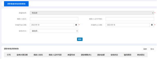 單擊【信息查詢】下的【開發(fā)商貸款審批備案查詢】子菜單進(jìn)入如下所示頁面: