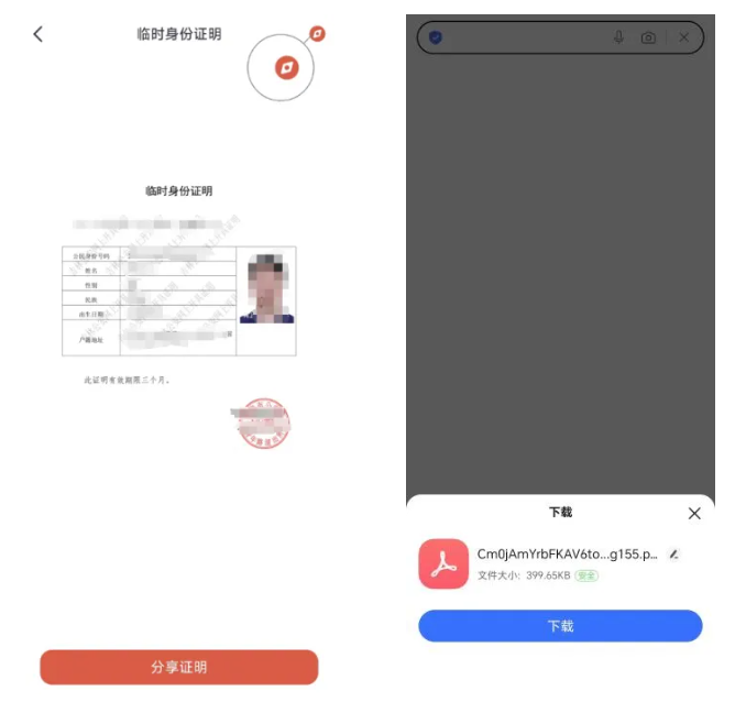 第二步:點(diǎn)擊“臨時(shí)身份證明”,確認(rèn)自己的身份信息,點(diǎn)擊提交,僅需90秒即可開具線上臨時(shí)身份證明。第三步:證明開好后點(diǎn)擊“查看證明”即可查看本人的臨時(shí)身份證明。第四步:點(diǎn)擊“臨時(shí)身份證明”的右上角可以下載開好的臨時(shí)證明,點(diǎn)擊后會(huì)跳轉(zhuǎn)到手機(jī)瀏覽器進(jìn)行下載。第五步:在手機(jī)瀏覽器的“下載管理”中可找到剛剛下載的“臨時(shí)身份證明”電子版。