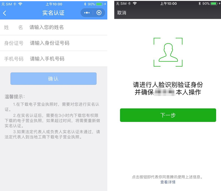 - 進(jìn)行人臉識(shí)別,只有通過人臉識(shí)別才可以下載執(zhí)照;如果人臉識(shí)別不通 過,需要到當(dāng)?shù)氐墓ど坦衽_(tái)下載電子營業(yè)執(zhí)照(人臉識(shí)別后,在三個(gè)小時(shí)內(nèi)下 載電子營業(yè)執(zhí)照不需要重新人臉識(shí)別)。