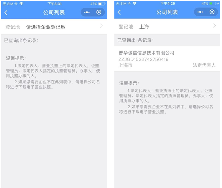 - 通過人臉識(shí)別后,選擇公司所在的登記地,然后選擇公司名稱就可以下 載電子營業(yè)執(zhí)照。
