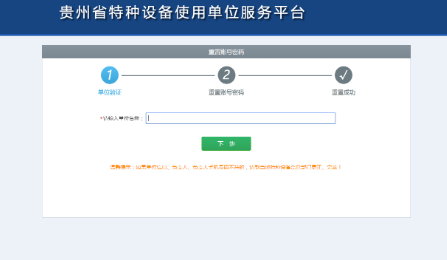 用戶可在登錄頁(yè)點(diǎn)擊“忘記密碼”按鈕進(jìn)入找回密碼的頁(yè)面,根據(jù)系統(tǒng)提示一步一步操作,進(jìn)行單位驗(yàn)證、重置賬號(hào)密碼、重置成功。如下圖所示: