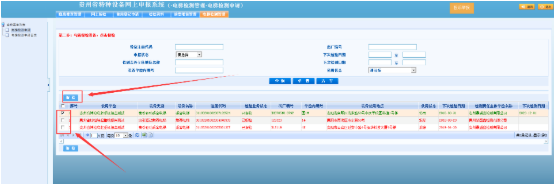 用戶可根據(jù)查詢條件查找需要的電梯檢測(cè)申請(qǐng)記錄,查詢結(jié)果支持查看每條申請(qǐng)的詳細(xì)信息、打印網(wǎng)上報(bào)檢申請(qǐng)表。點(diǎn)擊“相關(guān)操作”列的“詳細(xì)”按鈕可以查看網(wǎng)上報(bào)檢的詳細(xì)信息;點(diǎn)擊“頁(yè)面打印”按鈕可打印王航報(bào)檢申請(qǐng)表;點(diǎn)擊“word打印”按鈕可導(dǎo)出網(wǎng)報(bào)報(bào)檢申請(qǐng)表word文件。如下圖所示: