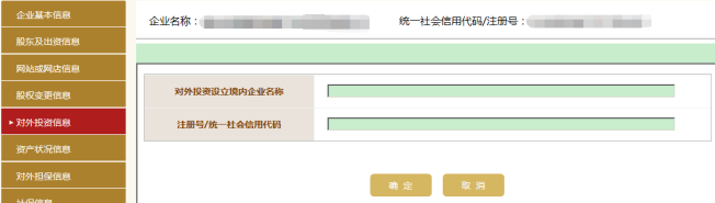 對于有設立對外投資企業(yè)信息的企業(yè),錄入相關的對外投資設立的境內企業(yè)名稱、注冊號,如圖: