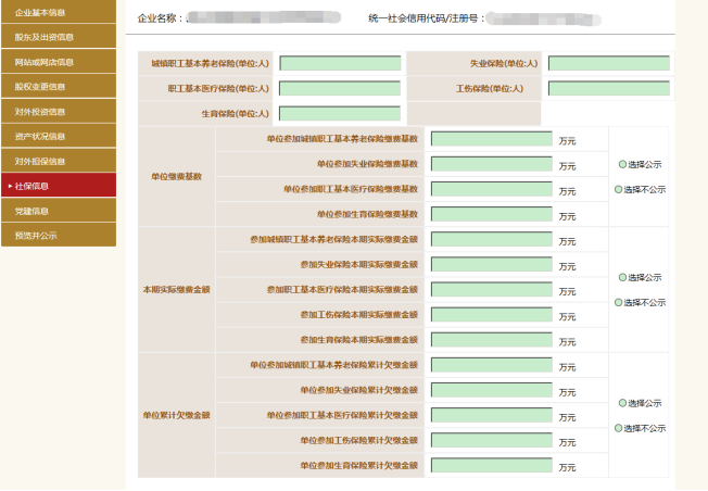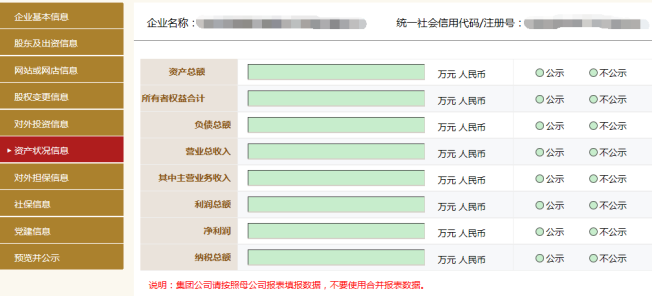 錄入資產總額、負債總額等信息,并選擇是否對外公示。