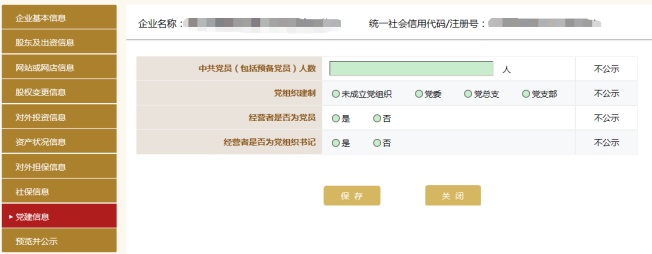 ★黨建信息為不公示信息,主要采集企業(yè)黨組織的建立情況,但屬于抽查范圍。其中中共黨員(包括預備黨員)人數(shù),為截止年度報告年份12月31日的中共黨員數(shù)。