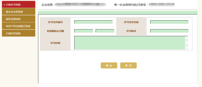 錄入許可文件編號、許可文件名稱、許可有效期、許可機關、許可內容等信息,如圖: