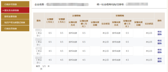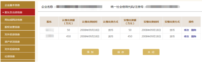 錄入股東、認繳額、實繳額、認繳明細(包括認繳出資方式、認繳出資額、認繳出資日期)、實繳明細(包括實繳出資方式、實繳出資額、實繳出資日期),幣種為人民幣(如統(tǒng)計數(shù)字以外幣為單位,則以統(tǒng)計當天匯率折算成人民幣數(shù)值)如圖: