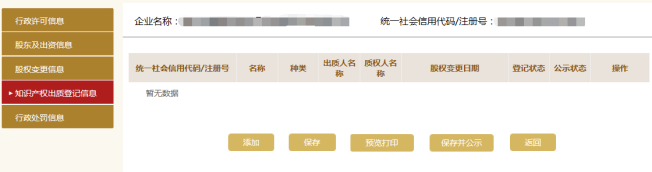 錄入注冊號、名稱、種類、出質人名稱、質權人名稱、質權登記期限等信息,如圖: