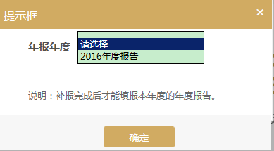 ★點擊“年度報告填寫”圖標,系統(tǒng)彈出選擇填錄年報年度的選擇窗口。