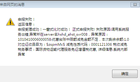 原因及解決方法:金三返回的錯誤,只能去大廳處理。