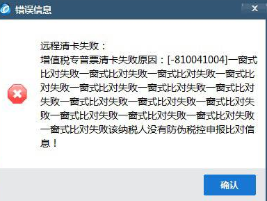 1.企業(yè)申報成功了,但是遠程清卡時提示以下錯誤,如下圖: