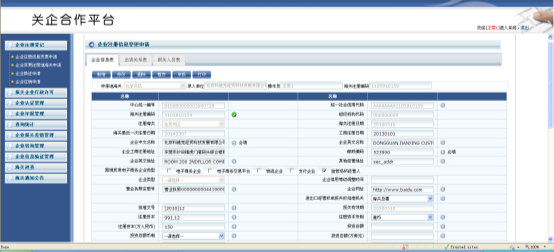 為滿足海關(guān)大監(jiān)管體系建設(shè)要求和海關(guān)企業(yè)管理作業(yè)規(guī)范化要求,根據(jù)海關(guān)總署H2010信息化工程的部署,電子口岸將原分散在多個(gè)系統(tǒng)中的企業(yè)管理的各類功能集成到一個(gè)統(tǒng)一的系統(tǒng)中,開發(fā)了關(guān)企合作平臺(tái)系統(tǒng),使其作為企業(yè)的互聯(lián)網(wǎng)作業(yè)門戶,可動(dòng)態(tài)掌握企業(yè)自身在海關(guān)的注冊信息,便于及時(shí)辦理相關(guān)變更、延續(xù)、換證、分類業(yè)務(wù),向海關(guān)報(bào)送文件資料;同時(shí)海關(guān)可以通過系統(tǒng)向企業(yè)發(fā)布公告、通知,接受企業(yè)業(yè)務(wù)咨詢,實(shí)現(xiàn)關(guān)企良好溝通互動(dòng)。