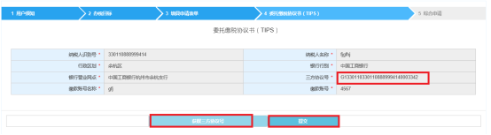 納稅人檢查委托繳稅協(xié)議書顯示的信息,點擊【獲取四方協(xié)議號】,系統(tǒng)自動顯示四方協(xié)議號,然后點擊【獲取四方協(xié)議號提交】。選擇的銀行如果沒有開通網(wǎng)上電子協(xié)議驗證功能,需下載打印紙質(zhì)協(xié)議書,并至開戶行營業(yè)網(wǎng)點柜臺辦理驗證。