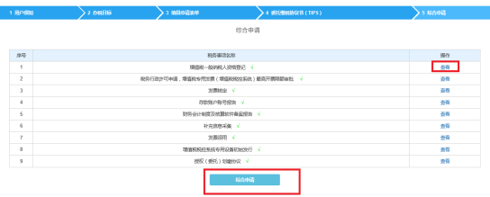 依據(jù)納稅人選擇的辦稅目標(biāo)和填寫的綜合申請表內(nèi)容,系統(tǒng)自動顯示涉及的單項業(yè)務(wù)表單,點擊【查看】,可以查閱各單項表的具體內(nèi)容。納稅人根據(jù)自身需要選擇是否【CA簽章】,涉及CA簽章需要逐張表單進行簽章。