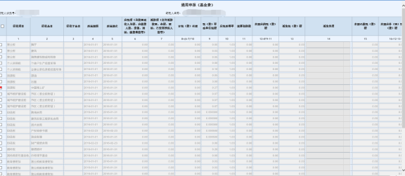 勾選需要申報的稅種,未選中稅種前,表單為灰色,無法填寫,選中稅種后,第6列、第7列、第13列、第15列允許用戶編輯,其他列均不可編輯。