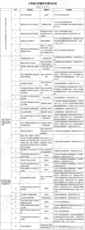 附件1:《工商登記前置審批事項(xiàng)目錄(2017年9月)》.xlsx