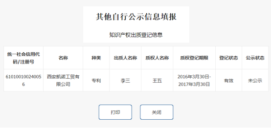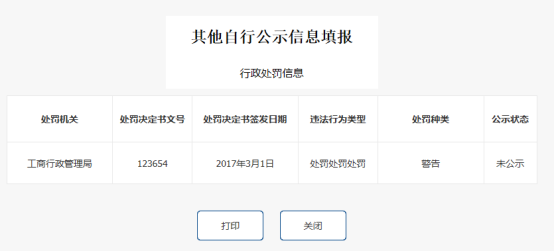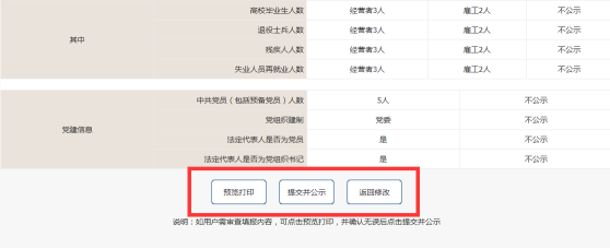 頁面可進(jìn)行預(yù)覽打印,點(diǎn)擊頁面底部打印,完成后點(diǎn)擊關(guān)閉,點(diǎn)擊“提交并公示”