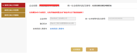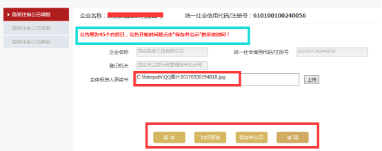 注:公告期為45個自然日,公告開始時間是點(diǎn)擊“保存并公示”的系統(tǒng)時間!