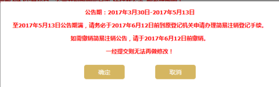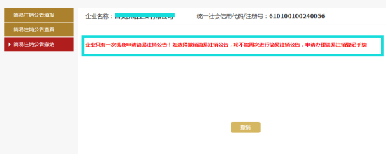 頁面可進(jìn)行簡易注銷撤銷,一旦撤銷,不能再次進(jìn)行,請慎重
