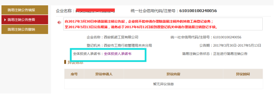 查看簡易注銷填報內(nèi)容,同時頁面可查看全體投資人承諾書