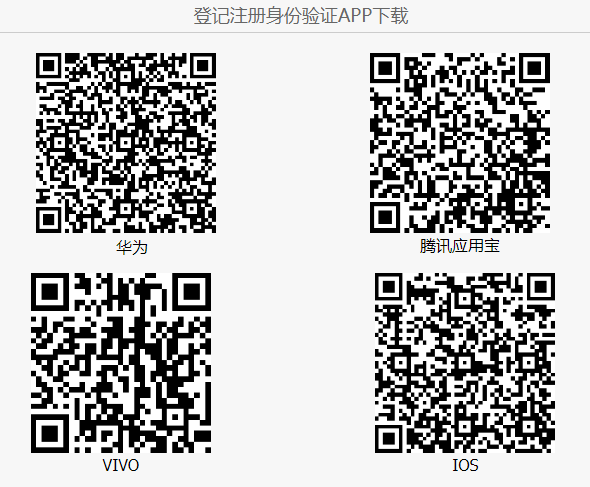 本系統(tǒng)自2019年6月24日起,更新了實(shí)名認(rèn)證功能。以自然人身份辦理用戶(hù)注冊(cè)、企業(yè)名稱(chēng)申報(bào)時(shí),代理人和投資人均需通過(guò)“登記注冊(cè)身份驗(yàn)證”APP進(jìn)行用戶(hù)實(shí)名注冊(cè)并同意辦理企業(yè)登記注冊(cè)及有效期設(shè)置后,再進(jìn)行操作。身份驗(yàn)證APP下載請(qǐng)前往華為應(yīng)用市場(chǎng)、騰訊應(yīng)用寶、VIVO應(yīng)用市場(chǎng)和蘋(píng)果應(yīng)用商店下載,也可以掃描二維碼下載。