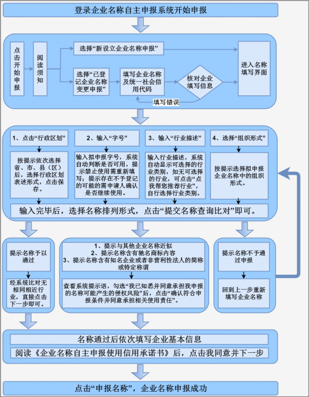 申請(qǐng)人可以通過(guò)本系統(tǒng)自主申報(bào)企業(yè)名稱,企業(yè)名稱不再實(shí)行預(yù)先核準(zhǔn),但企業(yè)名稱依法應(yīng)當(dāng)由國(guó)家市場(chǎng)監(jiān)督管理總局核準(zhǔn)或者涉及前置審批事項(xiàng)的除外。