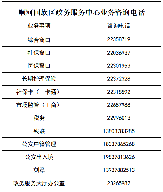 順河回族區(qū)政務(wù)服務(wù)中心電話:0371-23265982工作時間:周一至周五 上午:09:00-12:00 下午:13:00-17:00