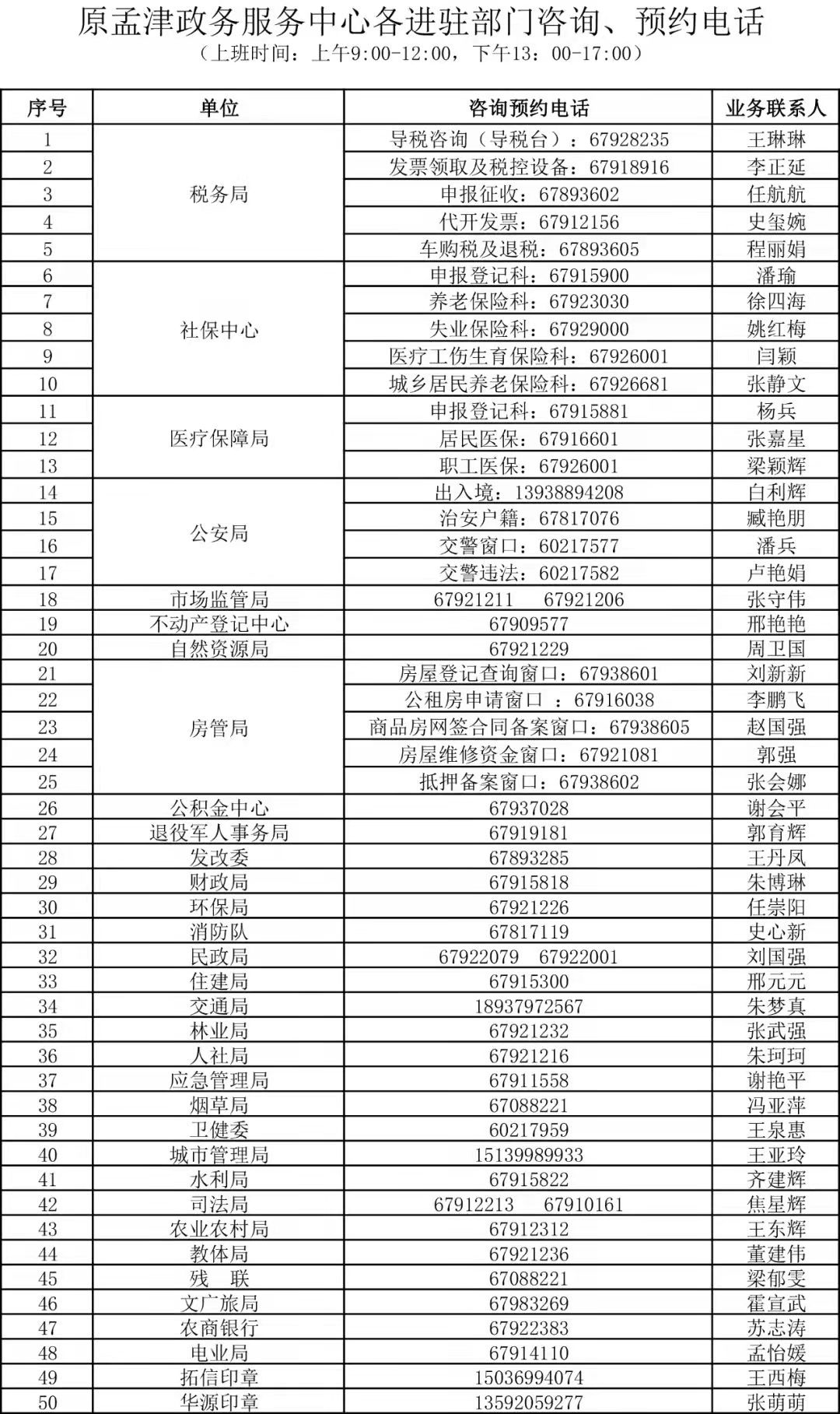 孟津縣行政服務(wù)中心辦事大廳入駐單位窗口咨詢電話,孟津縣政務(wù)服務(wù)中心值班電話0379-62989866,預(yù)約時間自2月2日起(上午8:30-12:00,下午2:30-18:00)