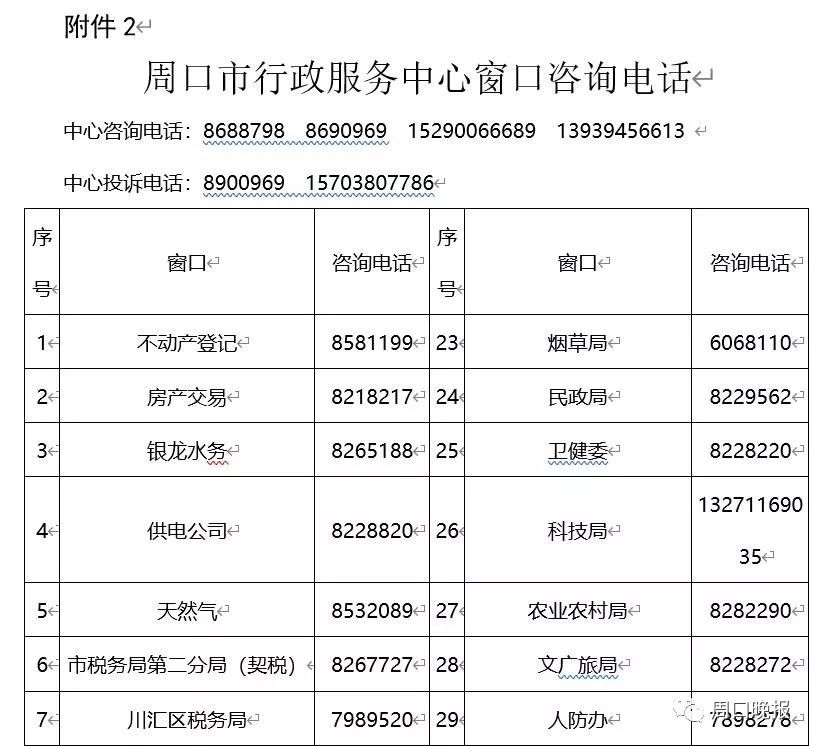 周口市行政服務(wù)中心辦事大廳入駐單位窗口咨詢電話,住建局窗口咨詢電話:8210061,環(huán)保局窗口咨詢電話:8228830,商務(wù)局窗口咨詢電話:8281129