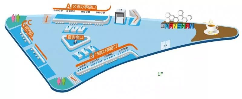 圖示1:南山區(qū)行政服務(wù)大廳1樓示意圖
