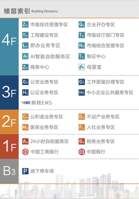 青島市民中心位于福州南路17,27號(hào),總建筑面積4.4萬平方米,其中,政務(wù)服務(wù)大廳面積約1.5萬平方米,共設(shè)窗口300余個(gè),進(jìn)駐部門60余個(gè),入駐工作人員900人左右,可辦理2300余項(xiàng)依申請(qǐng)政務(wù)服務(wù)事項(xiàng)。按照功能分區(qū),一層主要是24小時(shí)自助服務(wù)區(qū)、金融服務(wù)區(qū)、稅務(wù)業(yè)務(wù)專區(qū);二層是不動(dòng)產(chǎn)、公積金、人社、醫(yī)保業(yè)務(wù)駐廳區(qū)域;三層是公安、出入境、外國人工作居留辦理區(qū)、中小企業(yè)公共服務(wù)專區(qū);四層是市級(jí)綜合受理區(qū)、企業(yè)開辦專區(qū)、工程建設(shè)專區(qū)、市南區(qū)綜合受理專區(qū)、市級(jí)駐廳部門專區(qū)。
