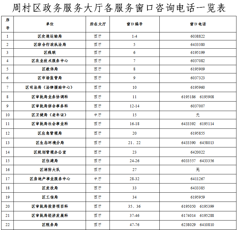 淄博市周村區(qū)行政審批服務(wù)局綜合受理窗口咨詢預(yù)約電話:0533-6412345、0533-6189618人社窗口咨詢預(yù)約電話:0533-6182090、0533-6176161、0533-6178152醫(yī)保窗口咨詢預(yù)約電話:0533-3120000