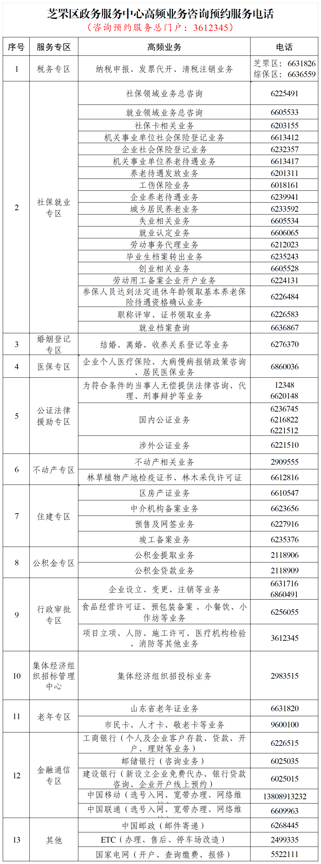 芝罘區(qū)政務服務中心實現(xiàn)全區(qū)1387項依申請政務服務事項和高頻民生服務事項應進必進,共設置14個政務服務專區(qū),具體分布如下: