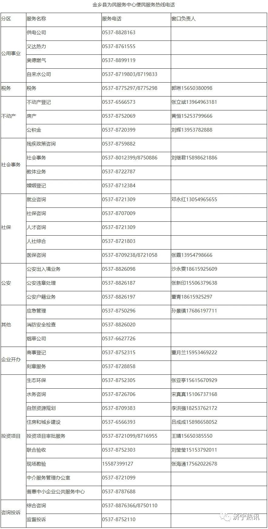 金鄉(xiāng)縣政務(wù)服務(wù)中心(為民服務(wù)中心)辦事窗口咨詢電話,金鄉(xiāng)?縣人力資源社會保障局辦事大廳窗口咨詢電話:0537-8721803,金鄉(xiāng)?縣醫(yī)保局窗口咨詢電話:0537-8811066,金鄉(xiāng)?縣應(yīng)急局咨詢電話:0537-8750296