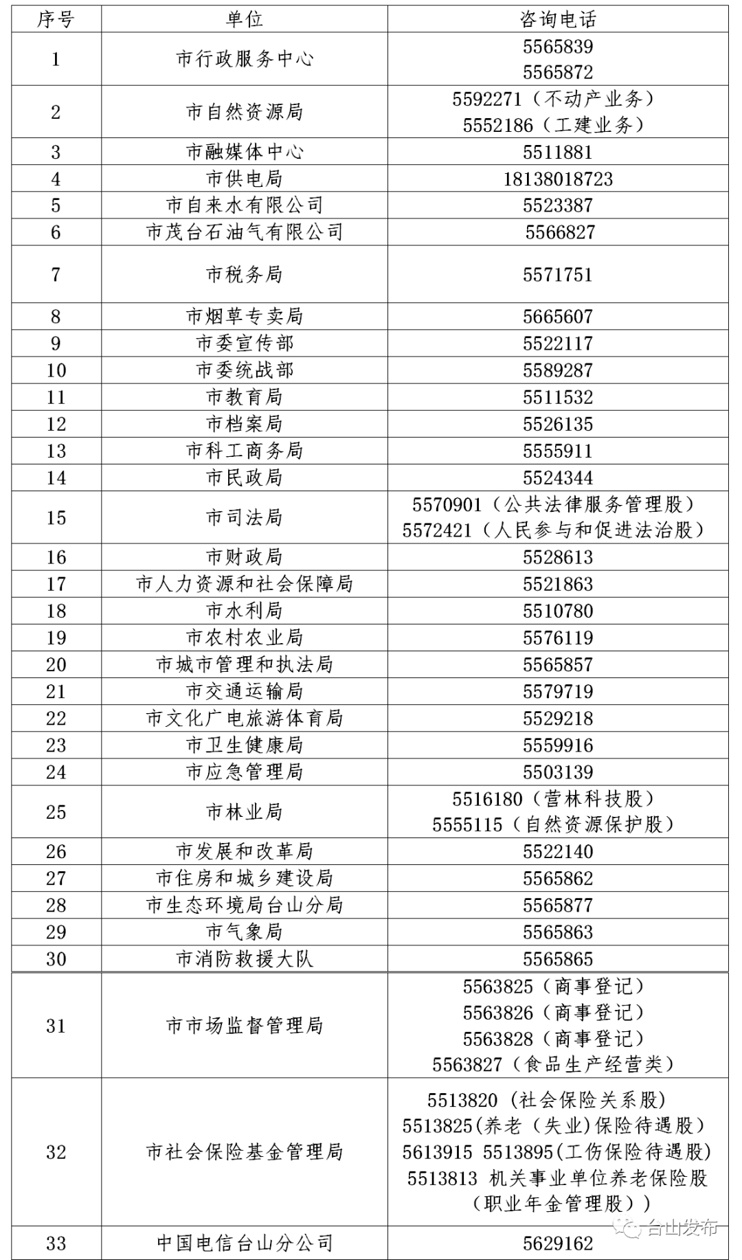 臺(tái)山市行政服務(wù)中心辦事大廳窗口辦公時(shí)間: 周一至周五,8:30-12:00,14:00-17:30(節(jié)假日、公休日除外),臺(tái)山市行政服務(wù)中心?咨詢(xún)電話:0750-?5565839、0750-?5565872養(yǎng)老(失業(yè))保險(xiǎn)待遇股咨詢(xún)電話:0750-5513825,社會(huì)保險(xiǎn)關(guān)系股咨詢(xún)電話:0750-5513820,醫(yī)療(生育、工傷)保險(xiǎn)待遇股咨詢(xún)電話:0750-5613915,5513895