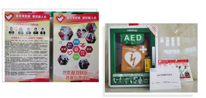 組建5人志愿者隊(duì)伍,提供熱情溫馨的志愿服務(wù),投放“救命神器”AED提升中心應(yīng)急救護(hù)能力,更好地保障辦事群眾的生命安全。