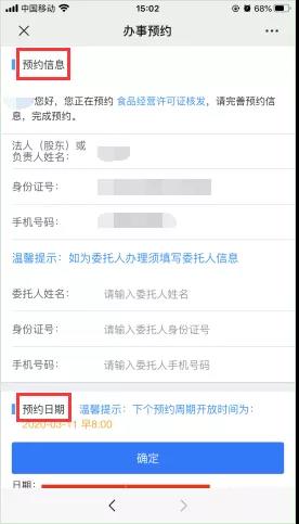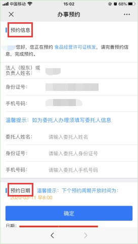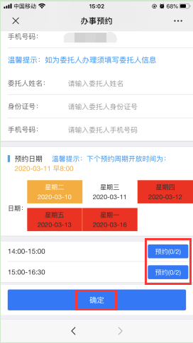 (3)填寫預(yù)約信息,選擇預(yù)約日期和預(yù)約時(shí)段,點(diǎn)擊確定即可完成預(yù)約。