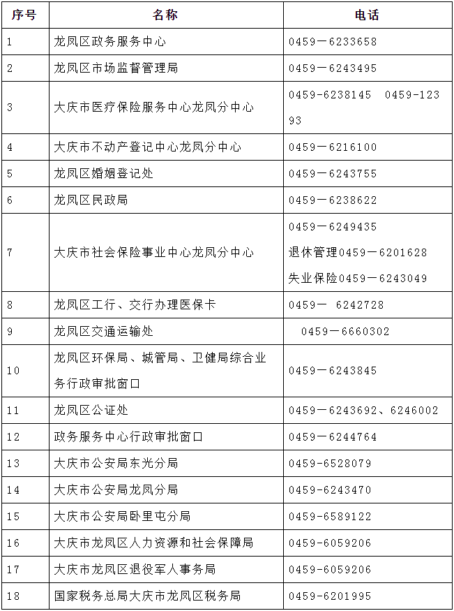辦公地址:黑龍江省大慶市龍鳳區(qū)龍政路1號 龍鳳區(qū)政務服務中心