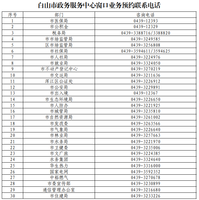 白山市人民政府辦公室聯(lián)系電話: 0439-3225537,白山市醫(yī)療保障局聯(lián)系電話:0439-3210780,白山市城市管理行政執(zhí)法局聯(lián)系電話:0439-3257299,白山市政數(shù)局聯(lián)系電話:0439-3242522