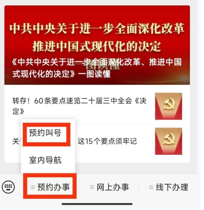 第一步:微信搜索關(guān)注“雞西政務(wù)服務(wù)中心”公眾號(hào),點(diǎn)擊菜單欄中“預(yù)約辦事”,選擇“預(yù)約叫號(hào)”板塊。