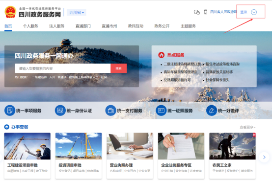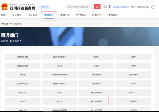 點(diǎn)擊進(jìn)入:四川省市場(chǎng)監(jiān)督管理局網(wǎng)上辦事大廳。登錄四川政務(wù)服務(wù)網(wǎng)