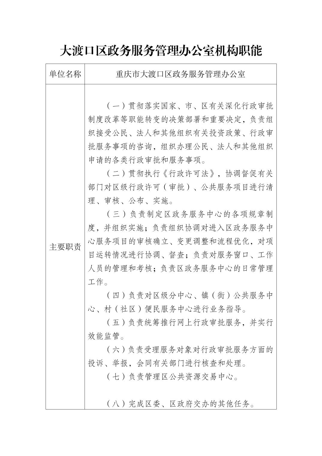 ?重慶市大渡口區(qū)政務(wù)服務(wù)管理辦公室是重慶市大渡口區(qū)機(jī)構(gòu)改革新組建的政府工作部門。