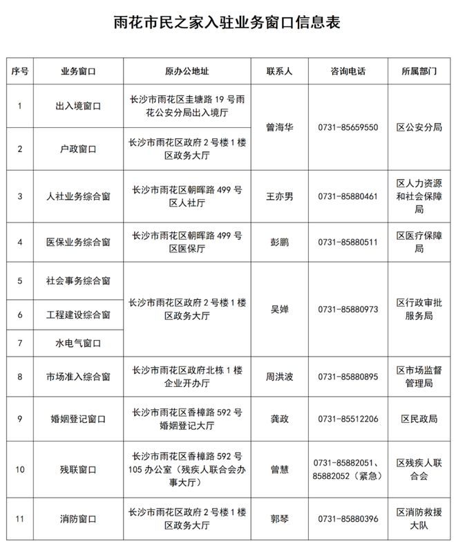1.雨花區(qū)人力資源和社會(huì)保障局(區(qū)人社醫(yī)保廳內(nèi)所有窗口業(yè)務(wù))