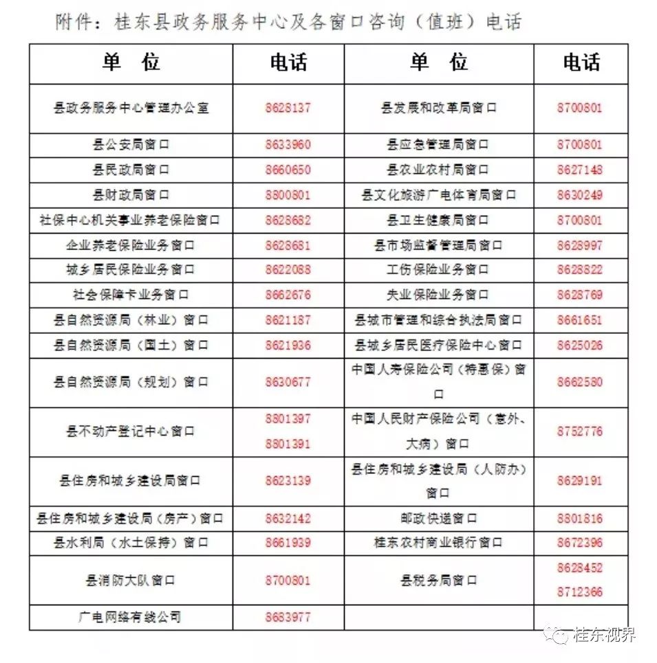 桂東縣政務(wù)服務(wù)中心管理辦公室0735-8628137桂東縣發(fā)展和改革局窗口0735-8700801桂東縣公安局窗口0735-8633960桂東縣應(yīng)急管理局窗口0735-8700801
