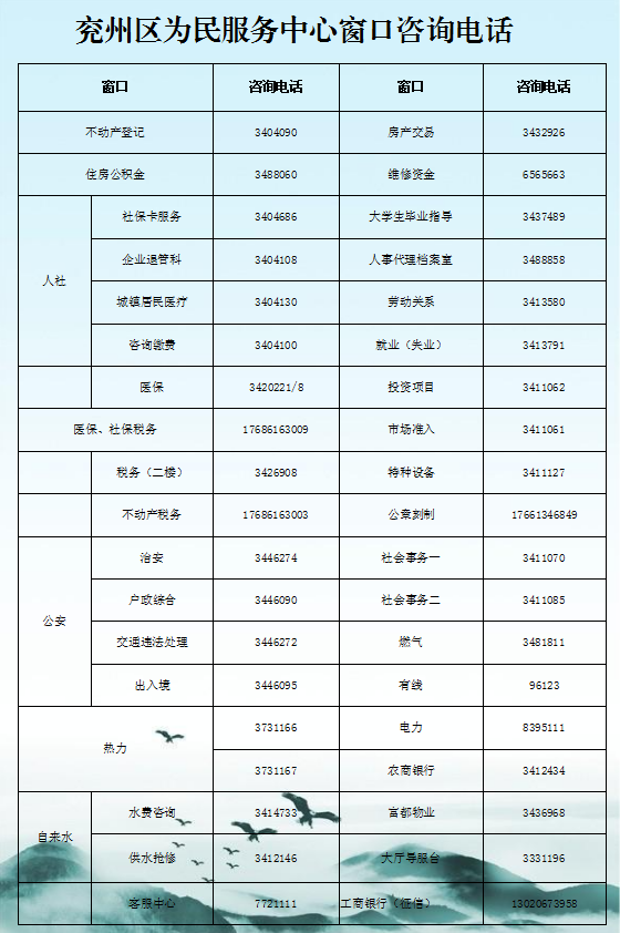 濟寧市兗州區(qū)政務(wù)服務(wù)中心辦事大廳窗口咨詢電話,兗州區(qū)科技局窗口咨詢電話:0537-3413872,兗州區(qū)工業(yè)和信息化局咨詢電話:0537-6593900,兗州區(qū)民政局聯(lián)系電話:0537-3413398